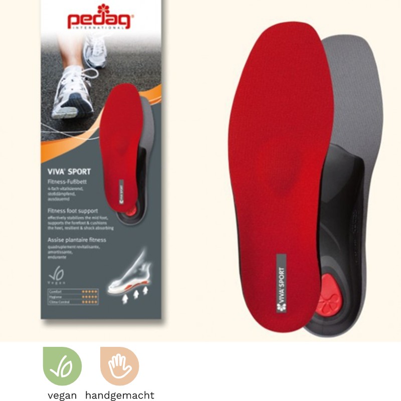 Športni vložek za čevlje iz visokokakovostnega blažilnega materiala, ki preprečuje in razbremeni točke pritiska na podplatu. Kombinacija s podstavkom Viva ima podporni učinek pri bolečinah v sklepih, plantarnem fasciitisu, nogah, ravnih stopalih in težavah s hrbtom.